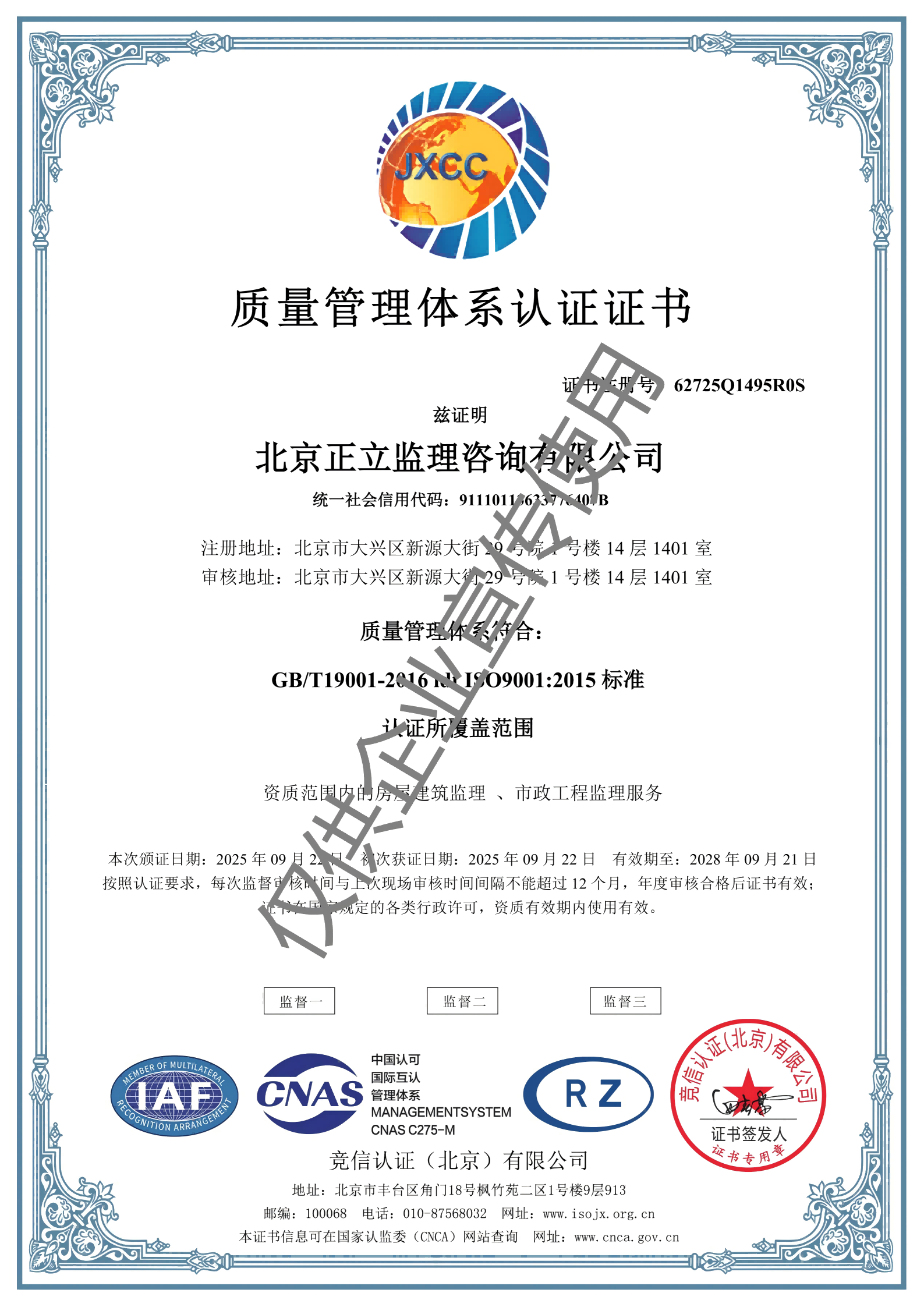 北京正立監(jiān)理咨詢有限公司成立于1998年7月1日,其前身隸屬于北京市公路質量監(jiān)理站。具有獨立法人資格,是獨立核算、自負盈虧的經濟實體。企業(yè)經營范圍:公路工程監(jiān)理、交通工程監(jiān)理、市政公用工程建設監(jiān)理、工業(yè)與民用建筑工程監(jiān)理、工程監(jiān)理咨詢、技術咨詢、技術培訓等。